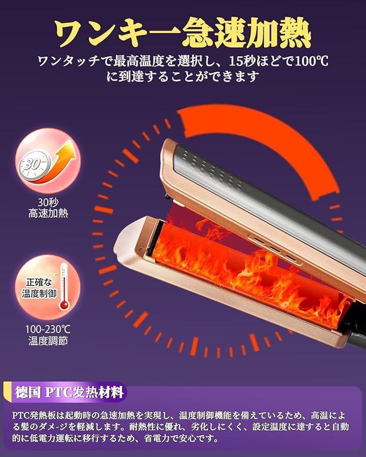 ヘアーアイロンわずか15秒で100℃まで急速予熱。
