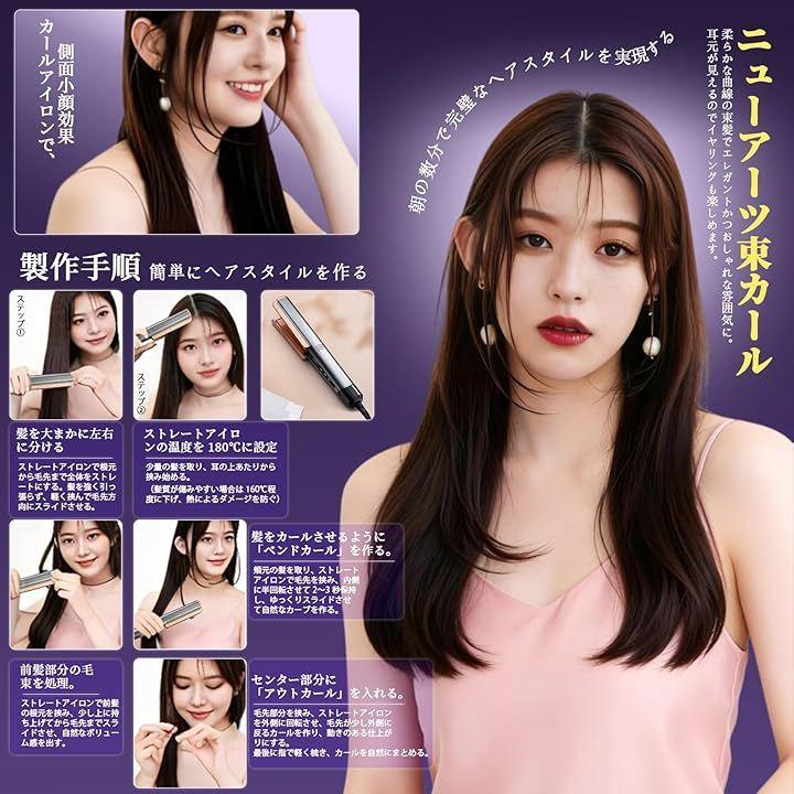 * ストレートもカールも思いのまま: 内巻き、外巻き、自然なウェーブまで、この 2way ヘアアイロン 1台でこなせます。