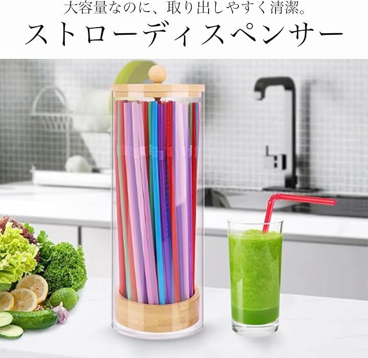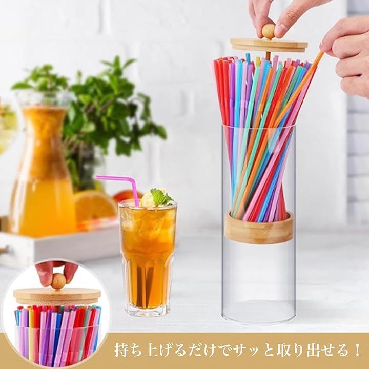 「見せる収納で映える」透明アクリルのストローディスペンサーで最大100本を美しくディスプレイ収納。