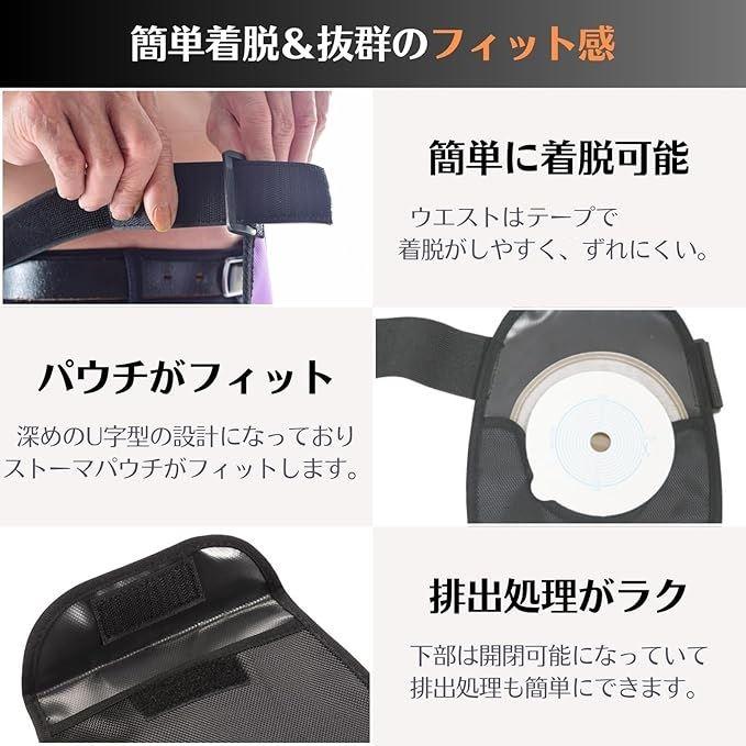 様々な体型に対応し、ストーマ装具のズレや落下を防止します。