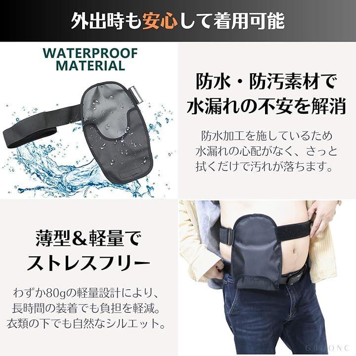 「カラー」ブラック「サイズ」フリーサイズ(調整可能)「機能・特徴」防水/伸縮性/軽量/長さ調整可能/導尿バッグ・ストーマパウチ対応