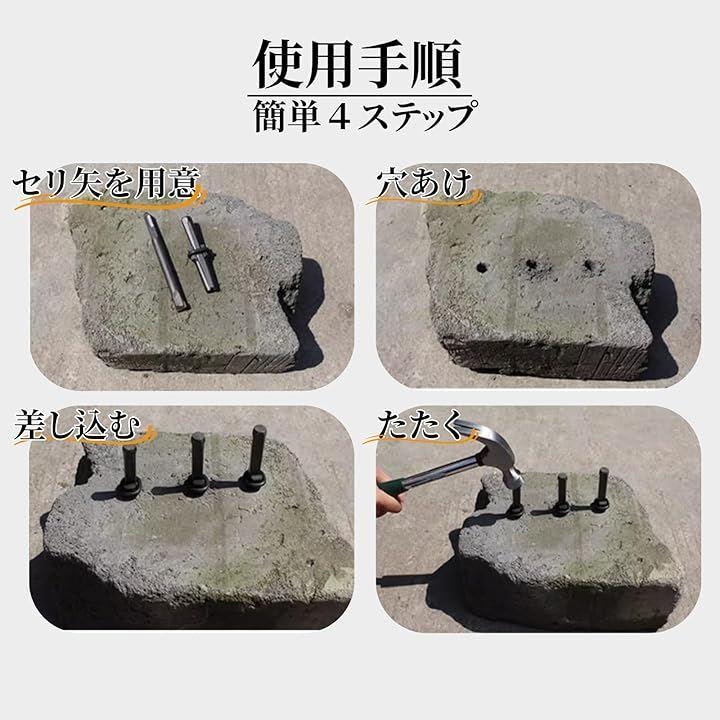 セリ矢は、初心者でも簡単に石材を割ることができる、頼れるアイテムです。