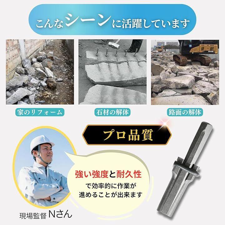硬い石、岩、大理石、コンクリート、石灰石、花崗岩など様々な岩を分割するために使用されます。