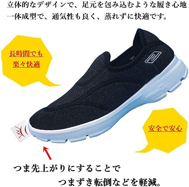 ・伸縮性のある素材を採用し、程よいフィット感があり、通気性もとても良く清潔感のあるさわやかな履き心地で、長時間歩いても蒸れにくいです。
