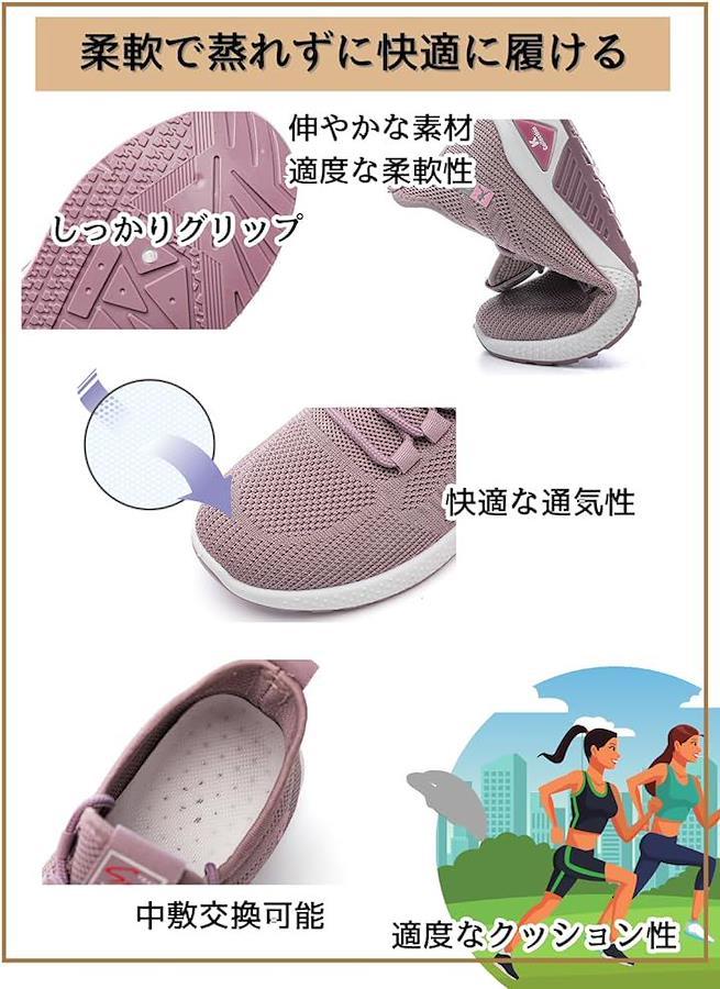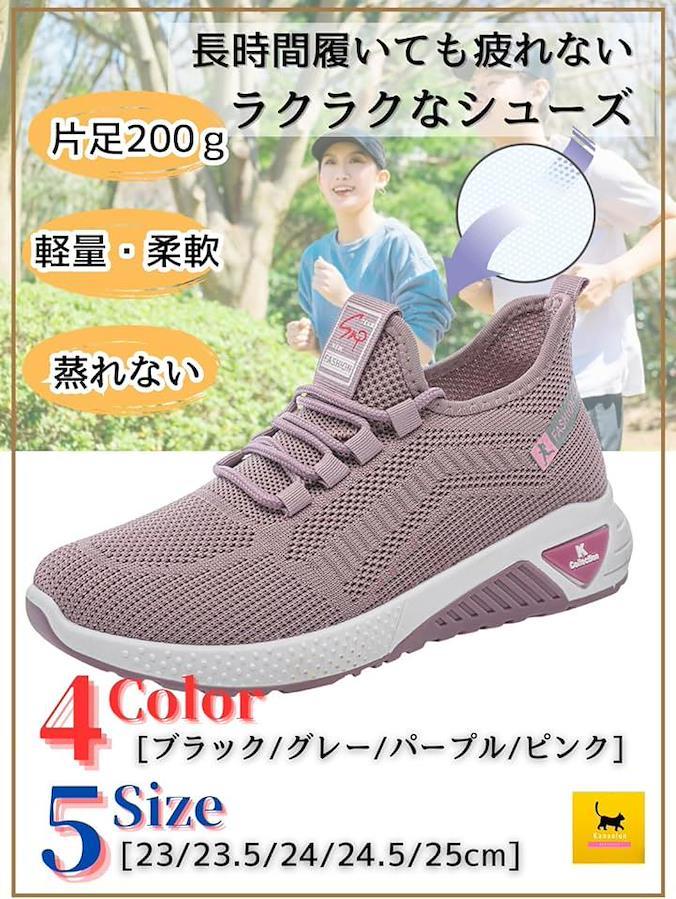 軽く伸縮性のある表面素材を採用し、程よいフィット感があり、通気性もとても良く清潔感のあるスポーティーな履き心地で、長時間歩いても蒸れにくいです。