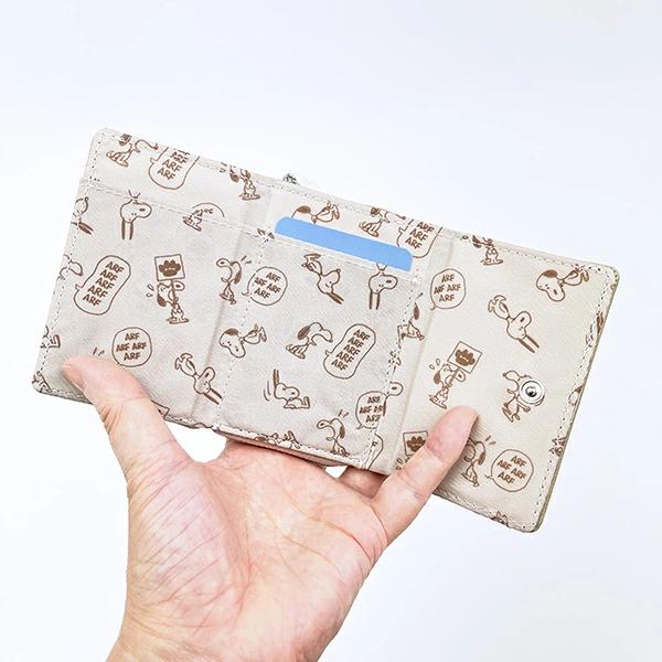 ウッドストックのコンパクト三つ折り財布です♪ウッドストックの刺繍がキュート♪落ち着いたくすみカラーもおしゃれ♪カード入れが4カ所とお札入れ、小銭入れが付いています♪お札入れは3つ折りタイプで持ち運びしやすいコンパクトサイズ♪小銭入れは独立していて、使いやすい♪裏地のスヌーピー総柄とファスナーチャームまでこだわって作られていますよ~☆彡