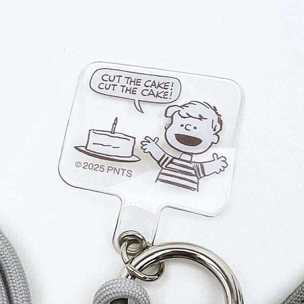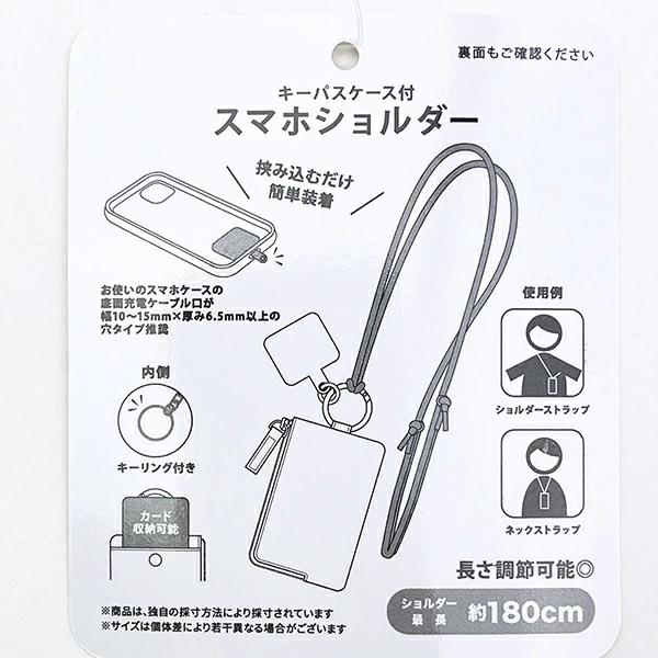 スヌーピーのスマホショルダーです♪お手持ちのスマホケースに簡単装着♪手元から落としてしまうリスクを軽減してくれます♪内側にキーリングが付いてるので、大事な鍵もなくさない♪ショルダーも長さ調節可能ですよ♪シンプルデザインでお出かけや旅行に大活躍間違いなし☆彡※お使いのスマホケースの底面充電ケーブル口が幅10~15mm×厚み6.5mm以上の穴タイプ推奨。【ショルダー最長:約180cm】