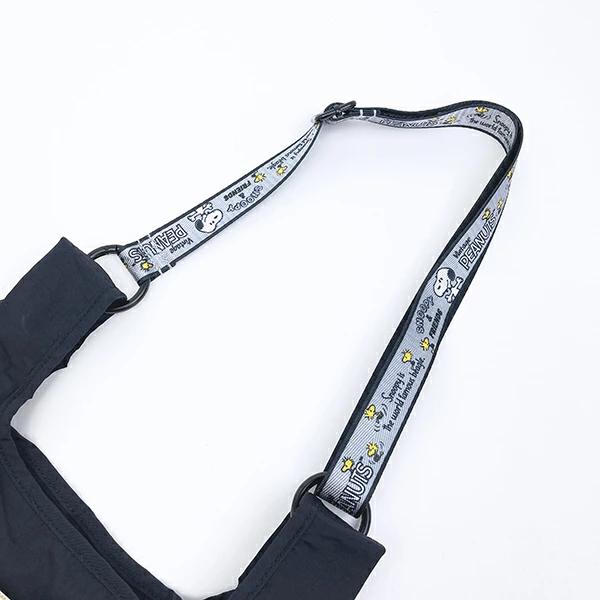 スヌーピーフェイスのポケットがポイントのショッパーバッグです。ショッパー型デザインのトートバッグ。長財布、スマホ、ボトル、A5ノート、ポーチなどが収納可能◎取り外し&長さ調整可能な、両面プリントのショルダーベルト付きなのでシーンに合わせて、手持ち・肩掛け・斜め掛けと使い分けができて便利♪真ん中のおすましフェイスのポケットがキュート☆使わないときは、このポケットをひっくり返してショッパー本体を収納すればなんと違う表情のスヌーピーに大変身!!コンパクトに持ち運びができちゃいます☆背面のルーポケットはスマホなど出し入れの多いアイテムの収納に便利です♪【サイズ】平置き時:約W25.5×H(中央部分)29(持ち手込)41cm、ショルダー最長:約85cm