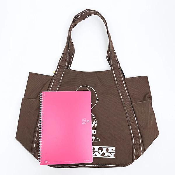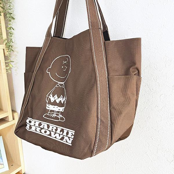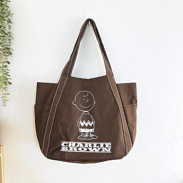 スヌーピー(チャーリーブラウン)のバルーントートバッグです。大容量なので荷物の多いママさんにもおすすめ♪内ポケット付きなので普段使いにもぴったり☆通勤・通学やマザーズバッグとして大活躍間違いなしのアイテムです♪