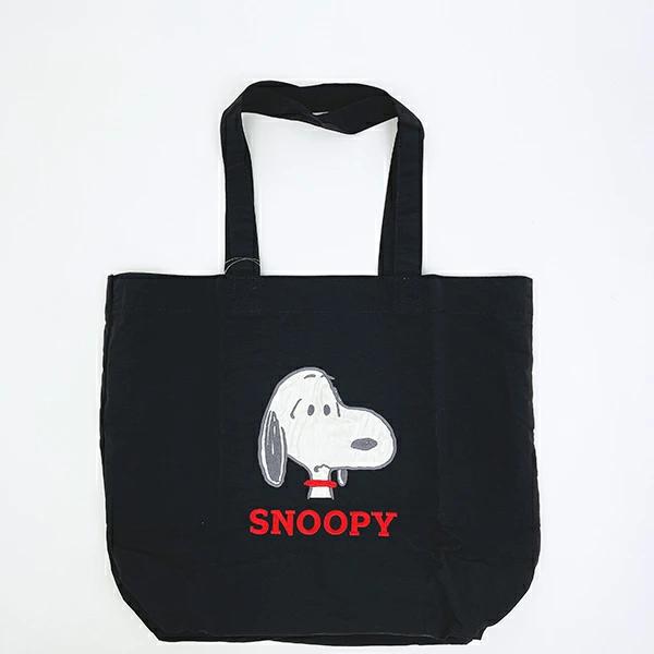スヌーピーのトートバッグです♪アップリケ刺しゅうがとってもキュート♪ナイロン素材なので、軽くて丈夫なのと急な雨でも安心♪内ポケット付いているので、スマホやイヤホンなど小物入れにピッタリ♪A4サイズがすっぽり入るサイズで、通学や通勤に大活躍☆彡