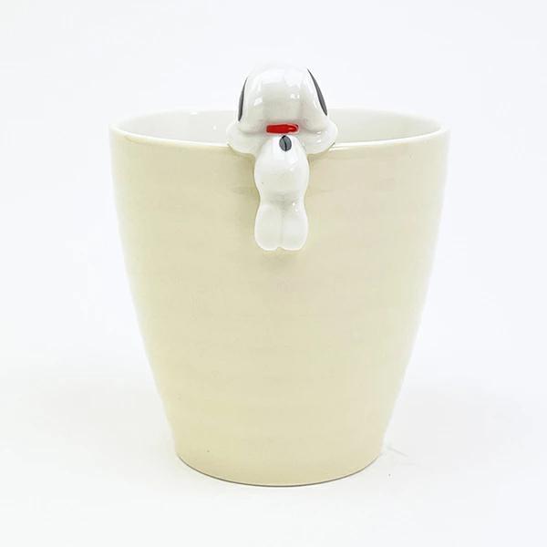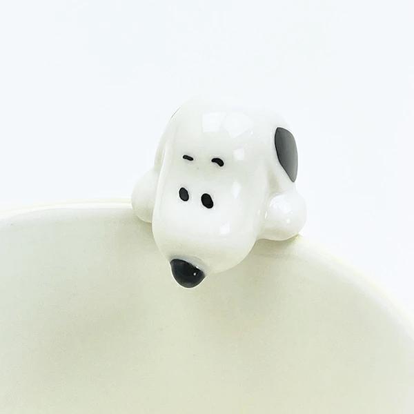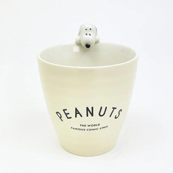 ピーナッツデザインの湯のみです。茶碗の縁にスヌーピーのフィギュアが乗っかったかわいいデザイン♪普段使いにもOK、手ごろなサイズ。同柄のお茶碗も同時発売でそろえて使ったり、プレゼントにもおすすめ★