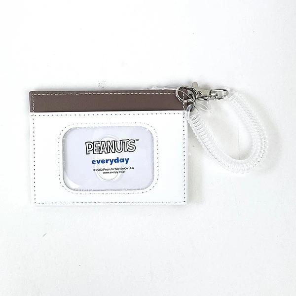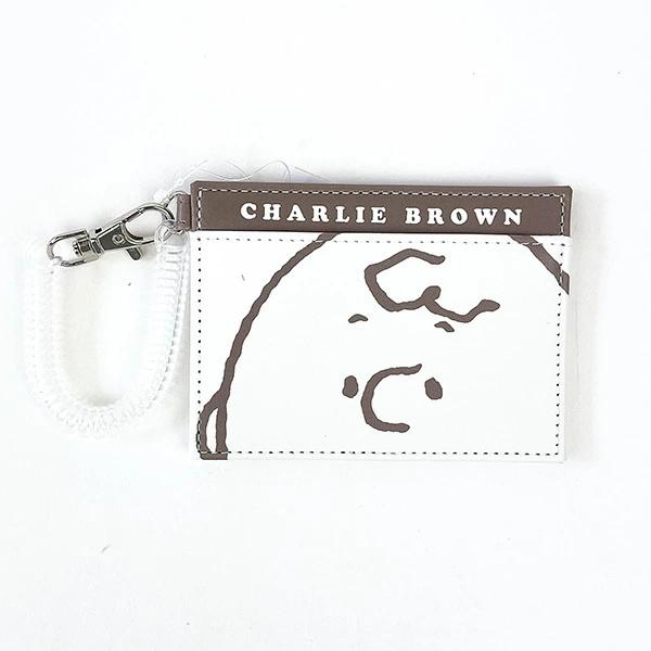 スヌーピーのチャーリー・ブラウンのカードケースです。表面、裏面の両面にポケット付きです。スプリングコイル付きなのでかばんに付けたまま使える♪