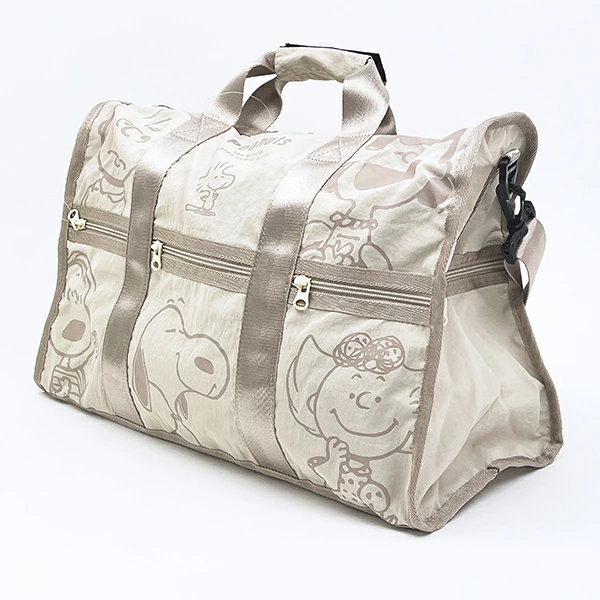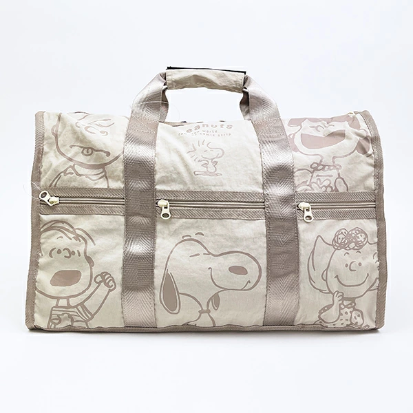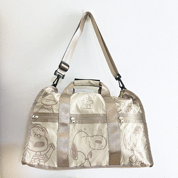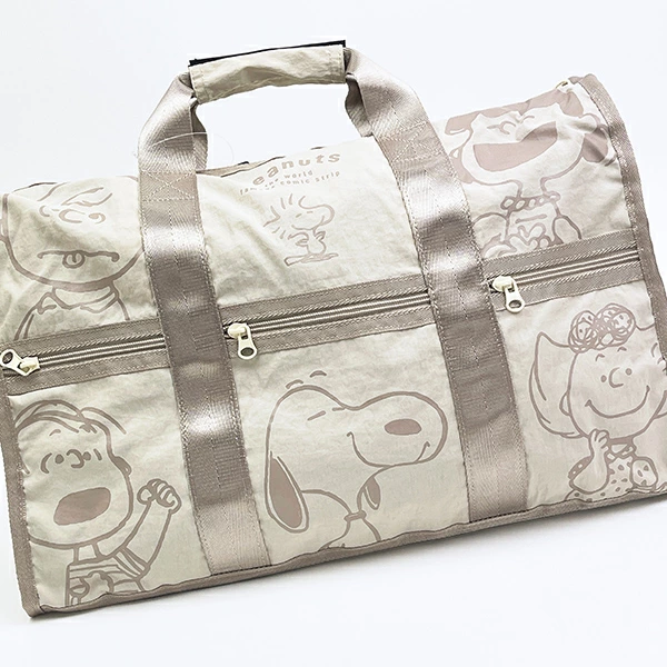 スヌーピーのボストンバッグです♪ポケットたくさんで、1泊や2泊の旅行にピッタリなサイズ感◎丈夫なナイロン生地も嬉しい!本体背面ベルトが付いているので、キャリーオン可能です♪スヌーピーと一緒に、楽しい旅をしましょう☆彡