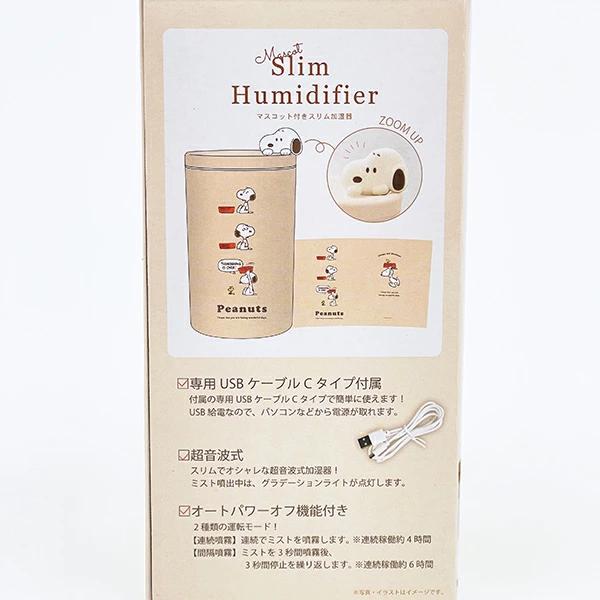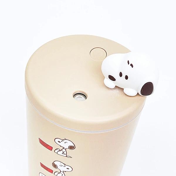 スリム型の可愛いスヌーピーの加湿器です。ちょこんと覗いているスヌーピーが可愛い♪フタを外して簡単に水を補給でき大きく開いてお手入れ簡単◎専用のUSBケーブル付きでCタイプなのでパソコンに繋いでデスクワークでも乾燥を防ぎます!スリムなのにオシャレな超音波加湿器でミスト噴出中はグラデーションライトが点灯します◎真っ暗な部屋が苦手な小さいお子様でも安心してリラックスできますよ♪【容量:270ml】