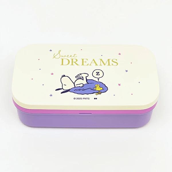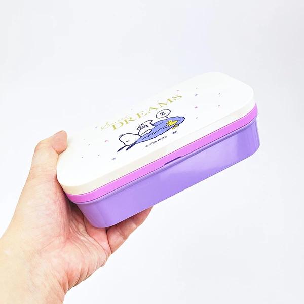 眠っている姿が可愛いスヌーピーのランチボックスです。一段目には箸とバンド入り♪大人向けのシンプルながらも可愛いデザインでどなたでもお使いいただけます♪ぜひランチ用品と合わせて大人ランチをお楽しみください☆食洗機・フタを外して電子レンジ使用可◎【容量:500ml】