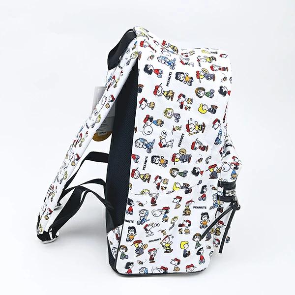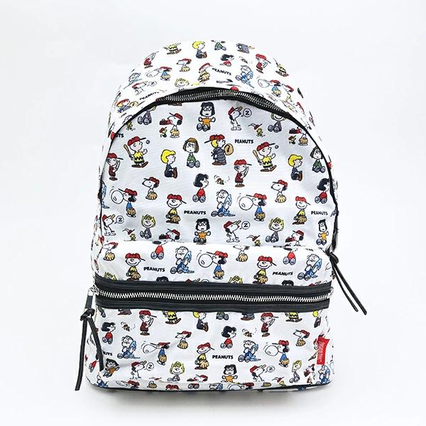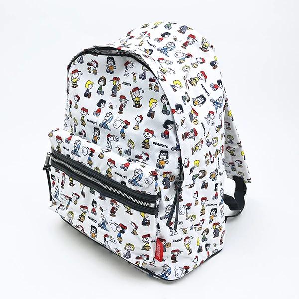 スヌーピーのリュックです♪野球をしているスヌーピーたちが、とってもキュート♪普段使いにピッタリなサイズ感☆外側と内側にもポケットが付いているので、小物の整理も◎総柄で、コーディネートのアクセントになるのと、お子さんと兼用できます♪同じデザインでボディバッグとボストンバッグもあるので、お揃いで持つのもいいですよ☆彡