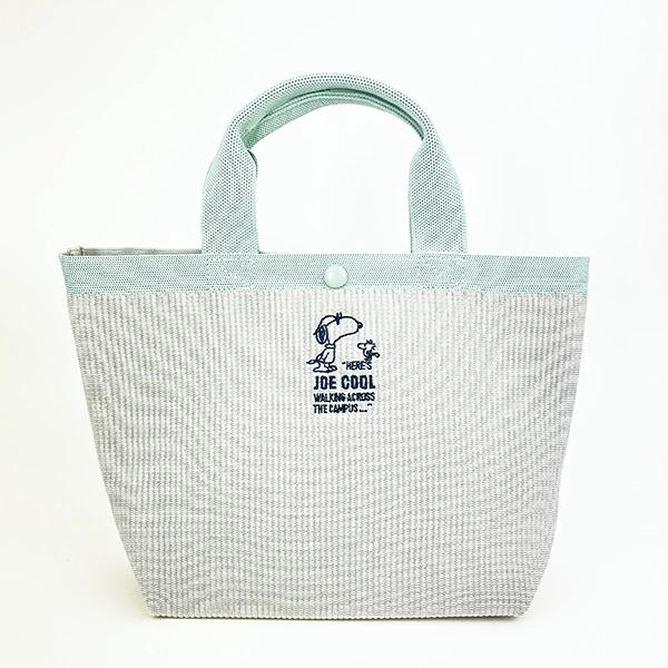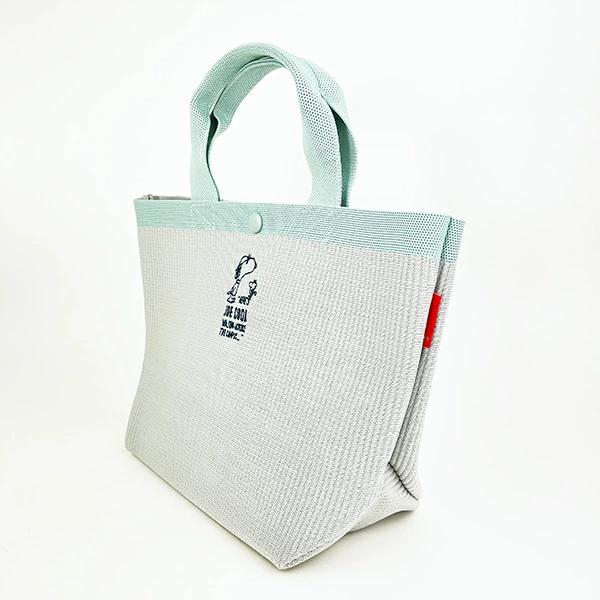 スヌーピーの表情豊かなトートバッグです。バイカラーでとってもオシャレ♪本体とポケットを一体で編み立てているのもポイント☆ランチにもお使いいただけます!内ポケット付きで使い勝手も◎丸洗いできるので汗ばむ季節も気持ちよくお使いいただけます♪【持ち手: 31cm】