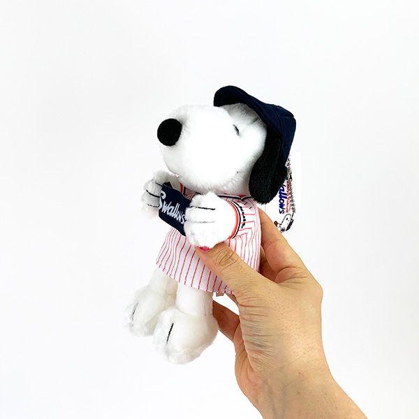 【プロ野球×スヌーピーコラボマスコット】東京ヤクルトスワローズVerのスヌーピーです。チームロゴ入りのタオルを掲げたスヌーピーがとっても可愛いマスコットです。ボールチェーンが付いてるのでカバンに付けて野球観戦のお供に◎お家に飾ってもかわいいですね♪ 【サイズ:18cm】