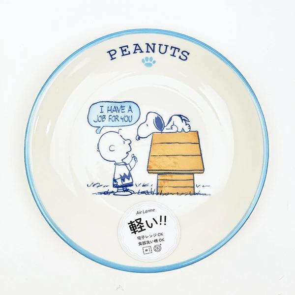 シンプルなデザインのスヌーピーのプレートです。お野菜や副菜やデザートなど乗せやすいサイズ◎軽くて持ちやすく落ち着いたカラーデザインでいつもの食卓がパッと明るくなりますよ♪同シリーズで19cmのプレートやボウルや箸や深皿もございますので揃えても可愛いですよ★食洗機・電子レンジ使用可◎