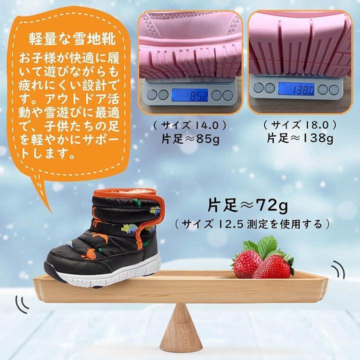 長時間のアウトドア活動や雪遊びに最適で、子供たちの足を軽やかにサポートします。
