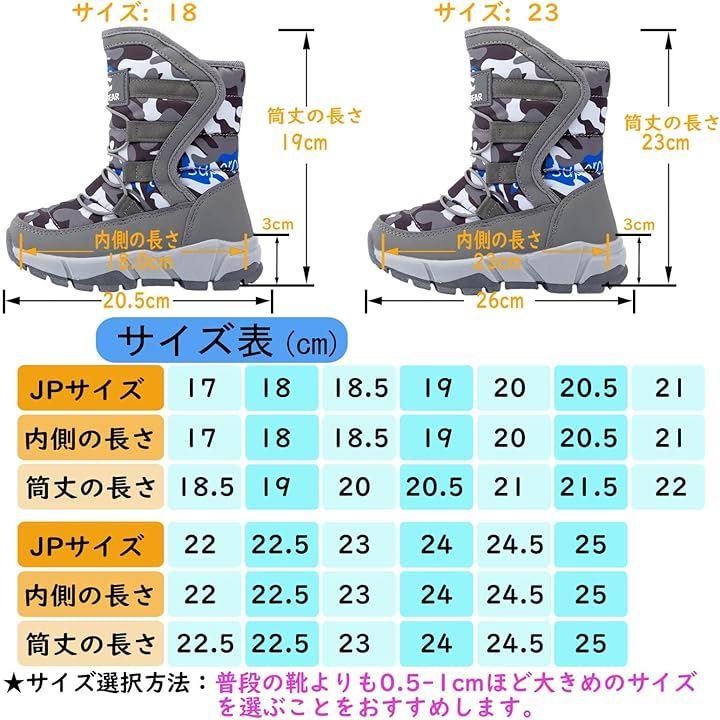 内側が厚めの保温素材のため、運動靴より1サイズ大きめの選択をお勧めします。
