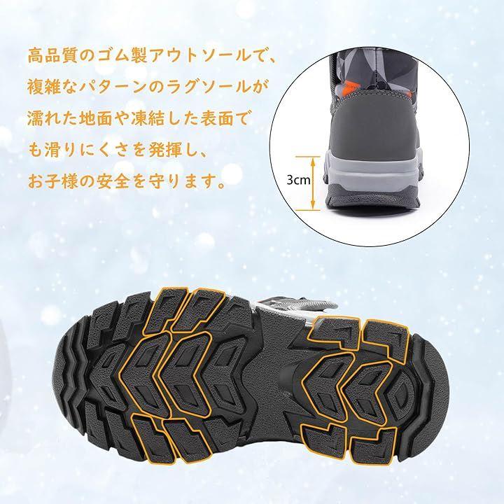 滑りにくいラバーソールと防水アッパー素材で、雪道や濡れた路面でも安心。