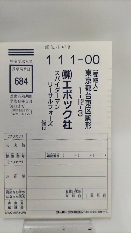 スパイダーマン リーサルフォーズ SHVC-P-ASPJ EPOCH スーパーファミコンソフト EPOCHSHVC-P-ASPJスパイダーマン リーサルフォーズ
