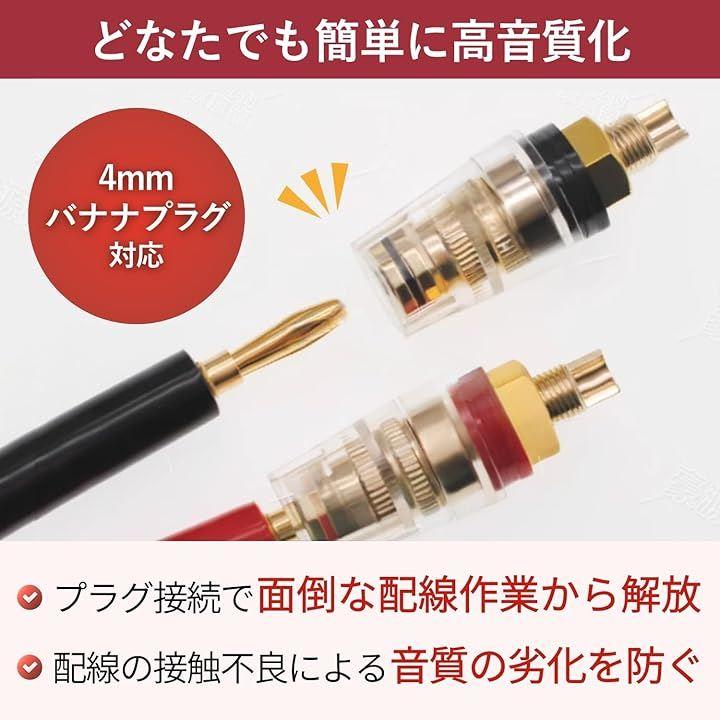 このスピーカーターミナルは汎用性の高いサイズ設計で、さまざまなアンプやスピーカーに使用可能です。