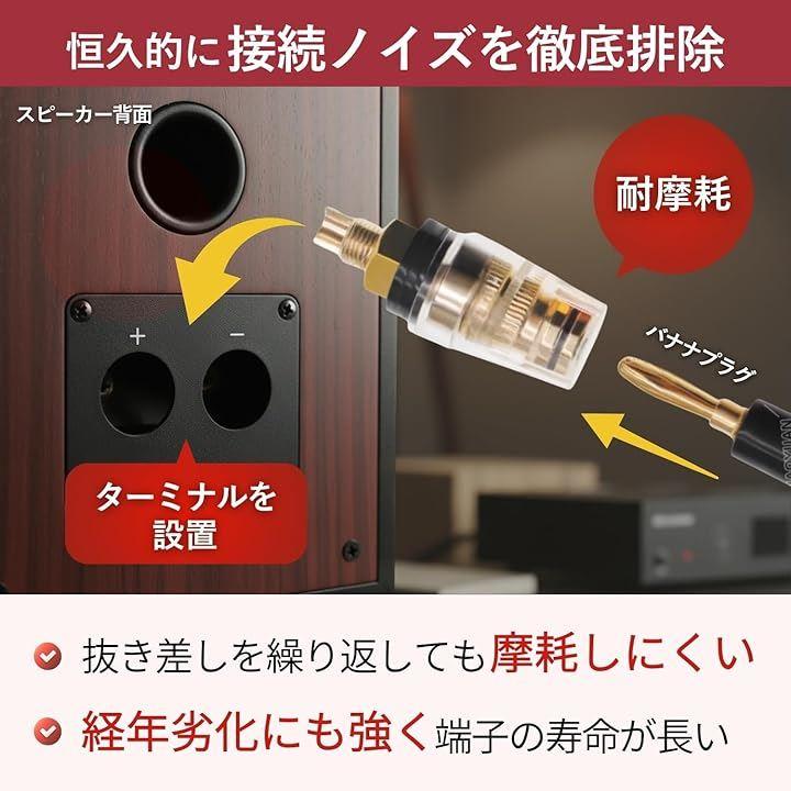 このスピーカーターミナルは汎用性の高いサイズ設計で、さまざまなアンプやスピーカーに使用可能です。
