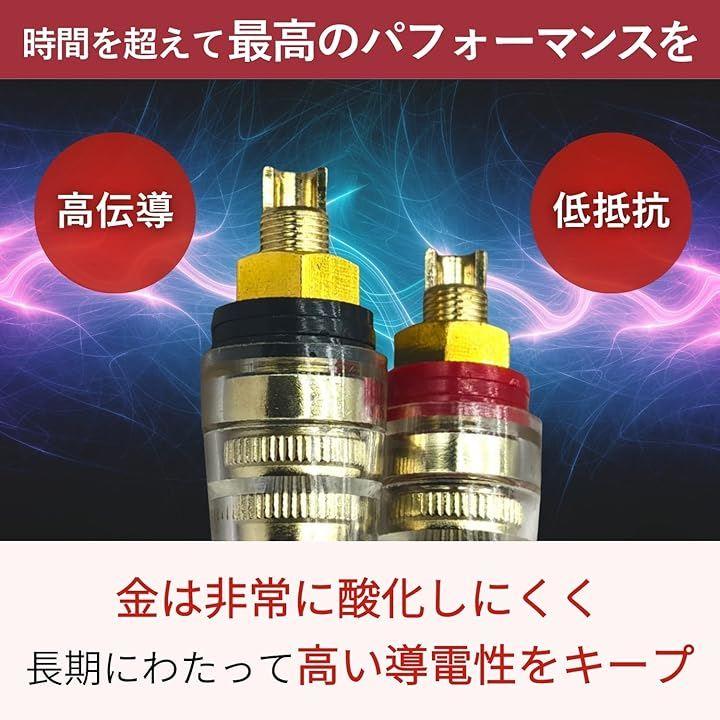 スピーカーターミナルで、優れた電気伝導性と耐久性を実現。金メッキ加工により酸化を防ぎ、長期間クリアな音質を維持します。