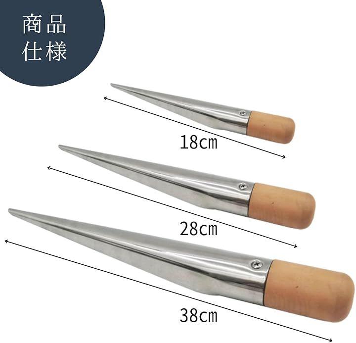 「商品内容」本体:ステンレス、取っ手:硬質プラスチック サイズ:(小)全長18cm 重量:40g (中)サイズ:全長28cm 重量:140g (大)サイズ:全長38cm 重量:420g