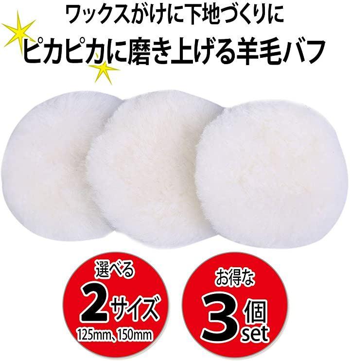 塗装後の仕上げやワックス後のふきとり、艶出しにもお使いいただける、車磨き用ウールバフです。
