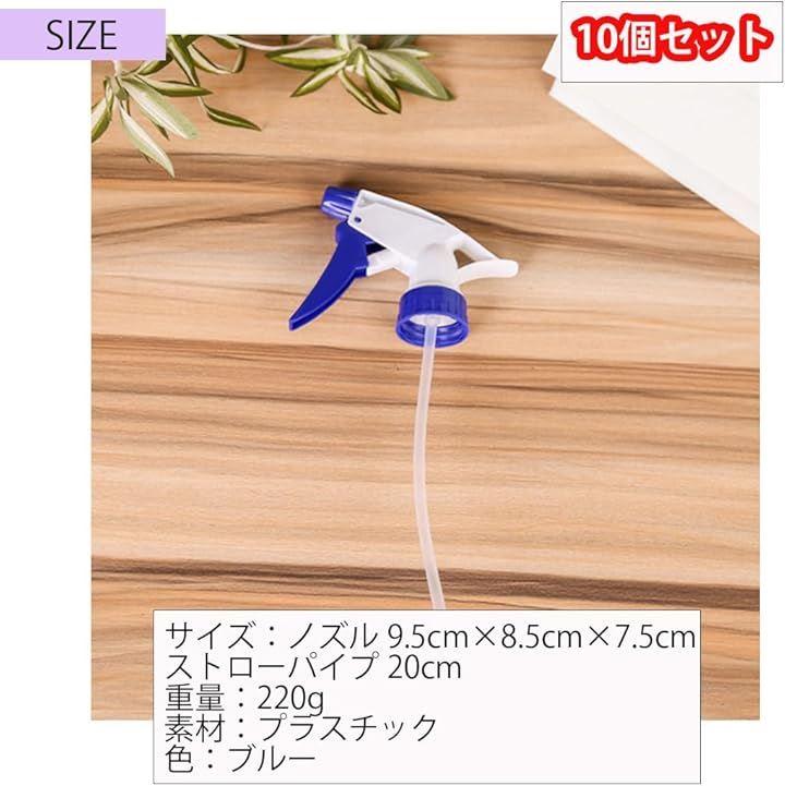 「商品詳細」サイズ:ノズル 9.5cmx8.5cmx7.5cm、ストローパイプ 20cm、重量:220g、素材:プラスチック、色:ブルー、パッケージ内容:本体x10個セット