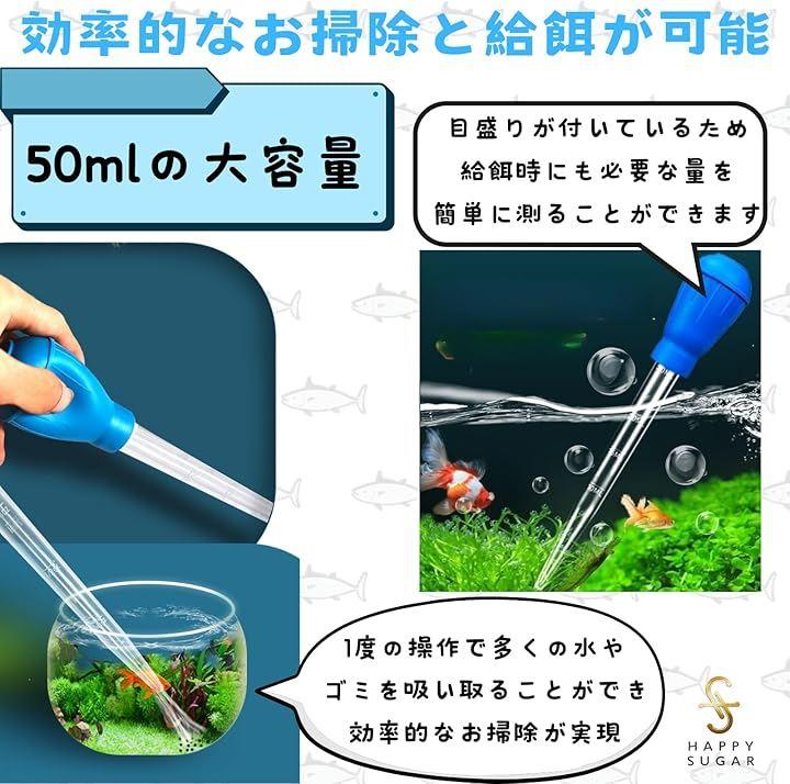 「効率的なお掃除と給餌が可能」50mlの大容量により、一度の操作で多くの水やゴミを吸い取ることができ、効率的なお掃除が実現します。