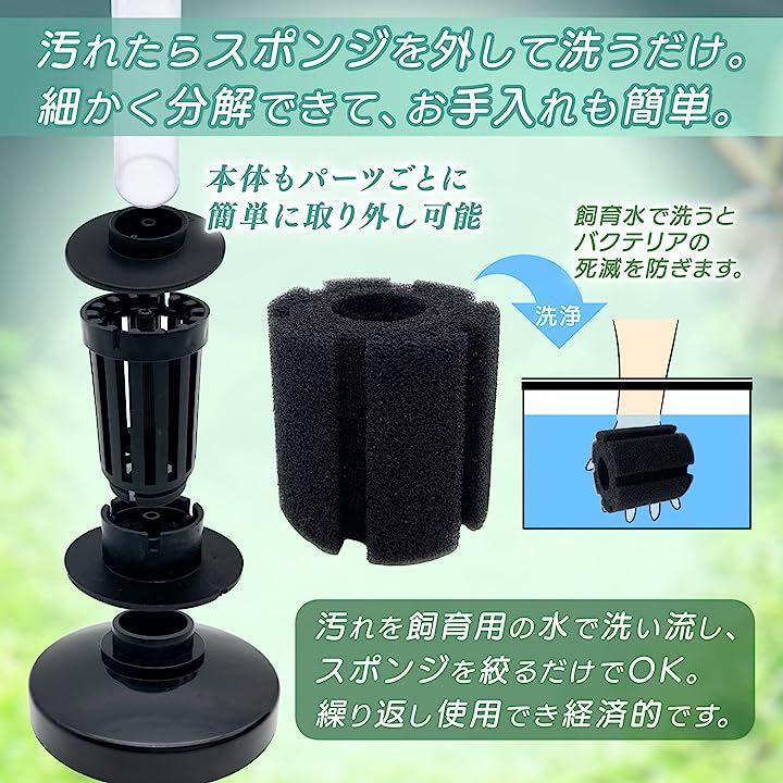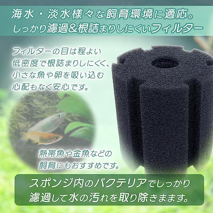 淡水、海水、鑑賞用、食用飼育にいたるまで幅広い分野でご使用いただける濾過能力に優れたスポンジフィルターです。