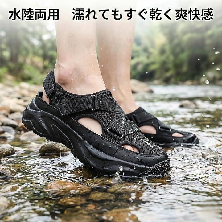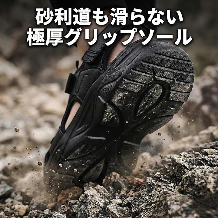 スニーカーのような「しっかりとした保護力」と、サンダルの「通気性」を両立。