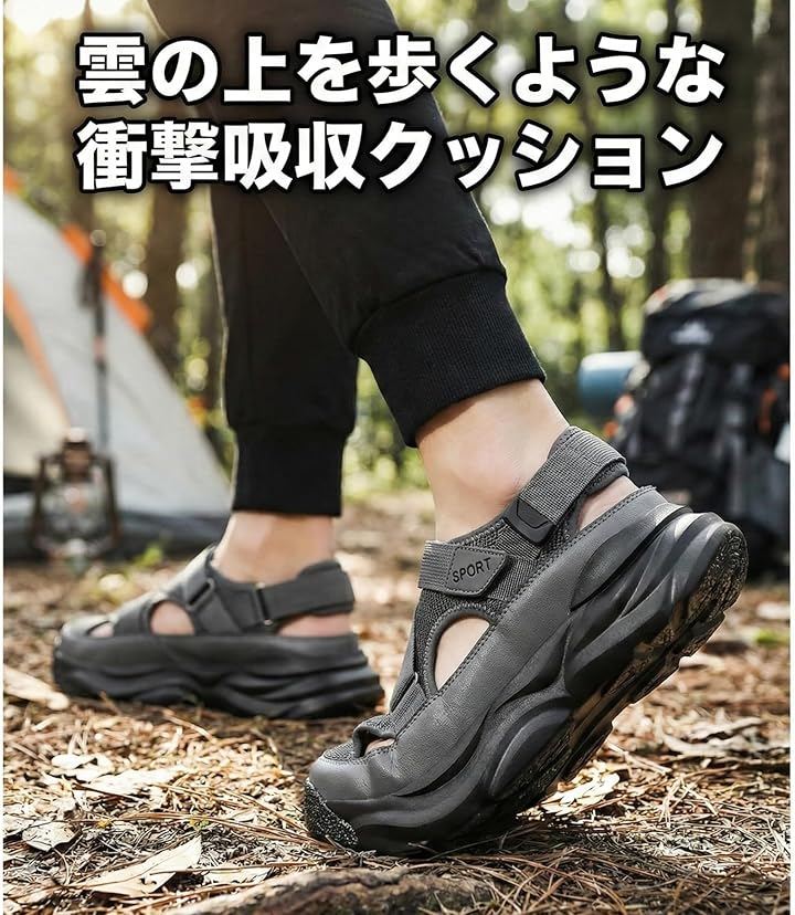 つま先を覆うトゥガード設計により、キャンプ場特有の砂利や小石から足指を守り、快適なアウトドア時間をサポートします。