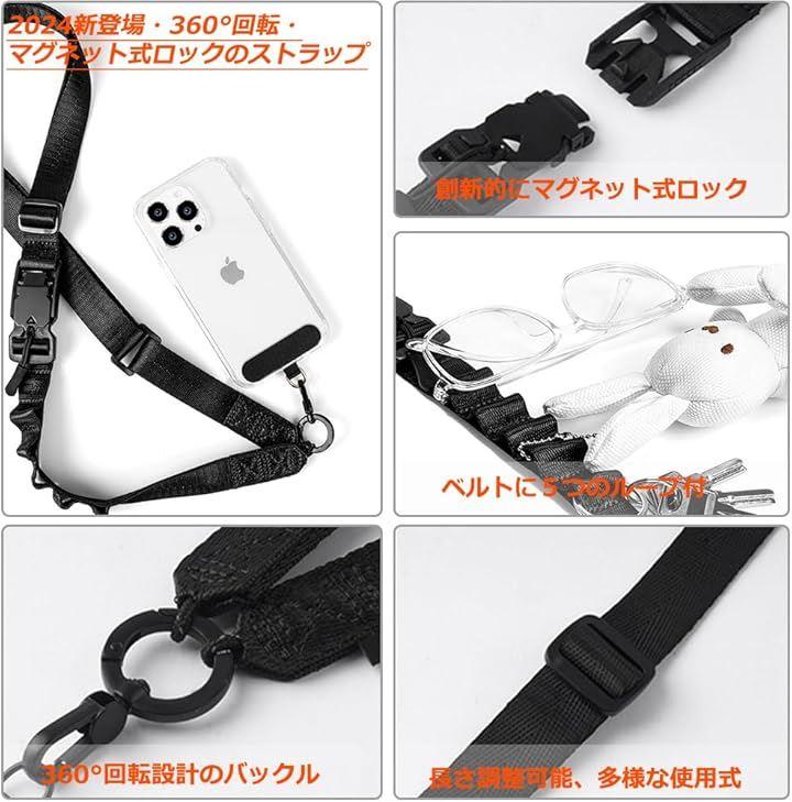 「360°回転設計・優れた耐久性」:本スマホショルダーストラップは自由に360°回転の連結金属バックルを採用して、様々な角度からスマホを円滑に使用可能、スマホストラップも結び付きにくいです。