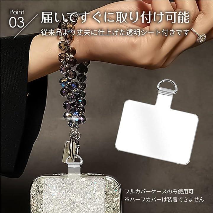 ラグジュアリーな輝きを放つビジュアルが印象的なスマホストラップ。