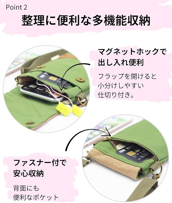 「コンパクト収納」スマホや財布、小銭などを収納できます。