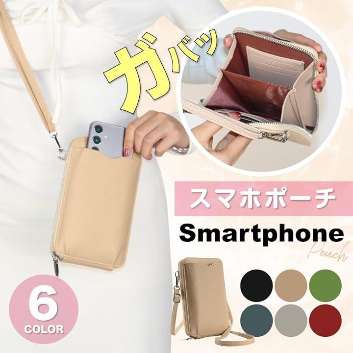 外出時に必要なスマートフォンやカード類、鍵、お札などの必需品を、ひとつにまとめて持ち運べる便利なスマホポーチです。