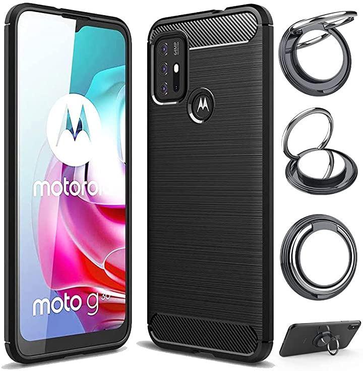 ・「スマホリングスタンド付」高品質TPU素材の表面と炭素繊維素材の内面を組み合わせたスタイリッシュなラギッド・アーマーケース 同色カラーの360度回転式スマホリングスタンド付。