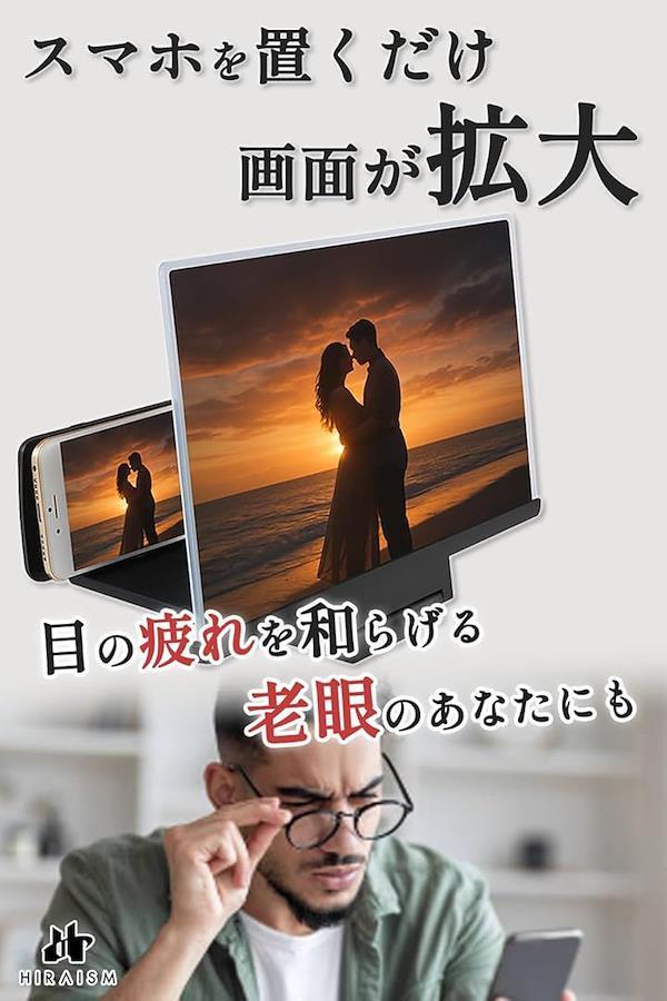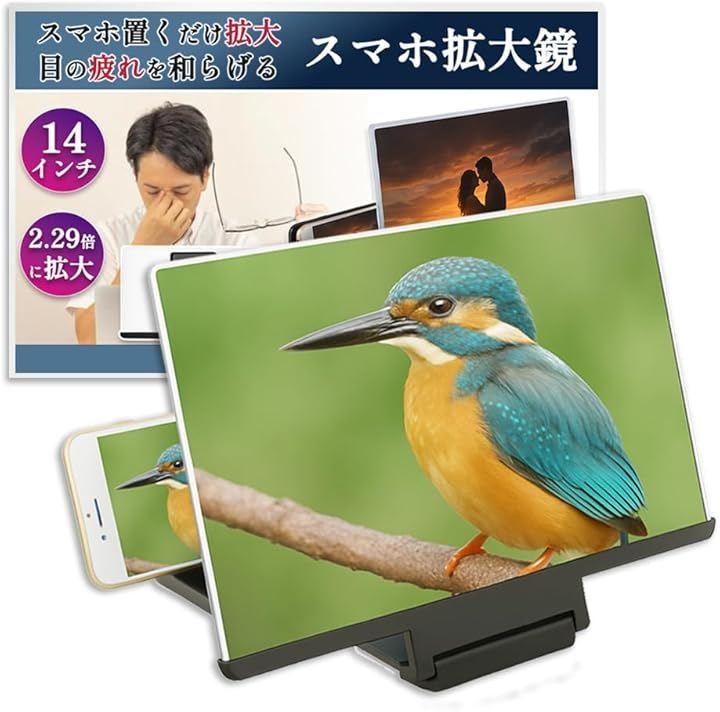 「目にやさしい14インチ大画面」スマホ画面を最大14インチまで拡大し、アクリルレンズによるクリアな映像で目の疲れを大幅軽減。