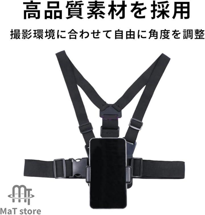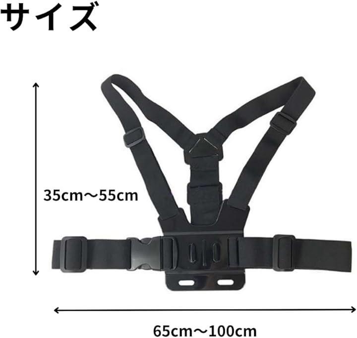 「商品詳細」サイズ:フリーサイズ 腰から肩までの長さ:約35cm~55cm、対応サイズ:5.2cm~10cm、スマホ、GoPro等が可能、重量:230g、パッケージ内容:本体x1個