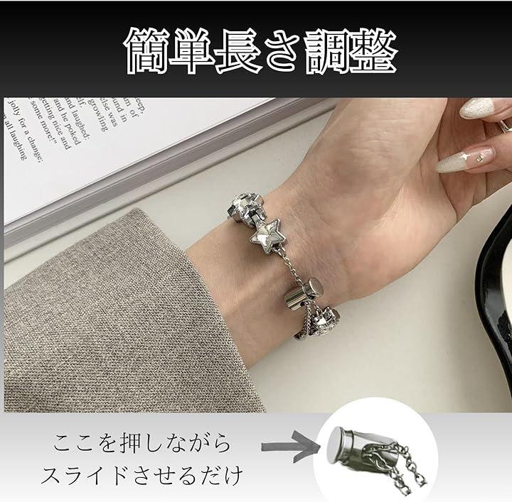 チェーン部分に付いたストッパーをスライドさせるだけで、約10cmから20cmまで自由自在にバンドの長さを変更できます。