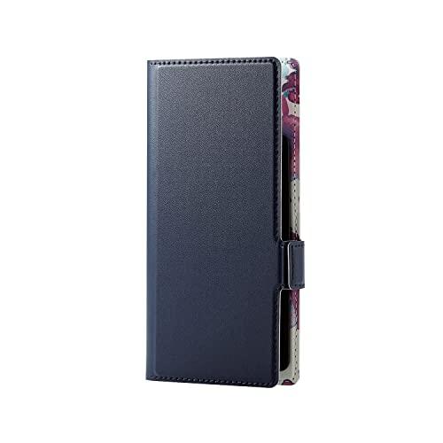 スマートフォン用マルチレザーケース/スライド式/手帳型/UltraSlim/Flowers/薄型/磁石付キ/Sサイズ ネイビー P-04PLFUSJBU