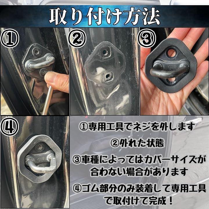 v「サイズ」 商品サイズ:カバー50x60mm ゴム部分60x75mm 専用工具40x100mm *カバー中心の部分の幅は37mmです(画像参照) 車種によっては装着できない場合がありますので、ご確認ください。