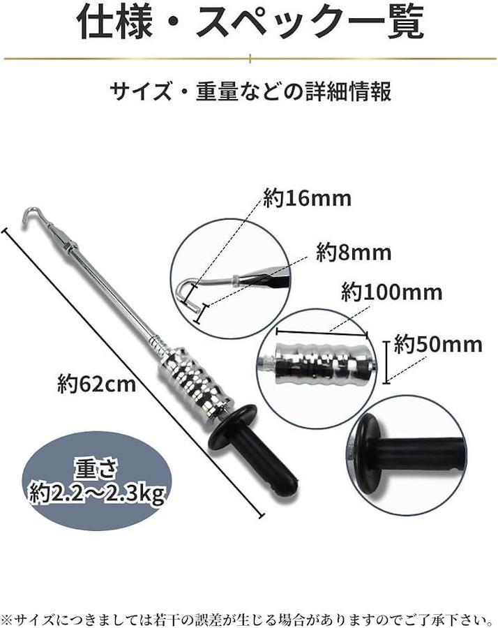 自動車整備や板金加工だけでなく、DIYでの修復作業やカスタム作業、メンテナンス作業にも導入しやすく、引っ張る・外すといった工程を安全かつスムーズに進めるための一助となります。