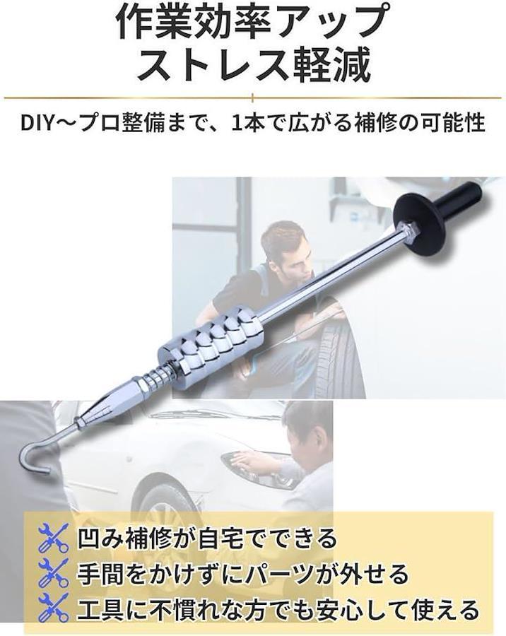 特に自動車の凹み補修や金属板の加工などで使用されており、プロの整備士からDIYユーザーまで幅広いニーズに応える仕様になっています。