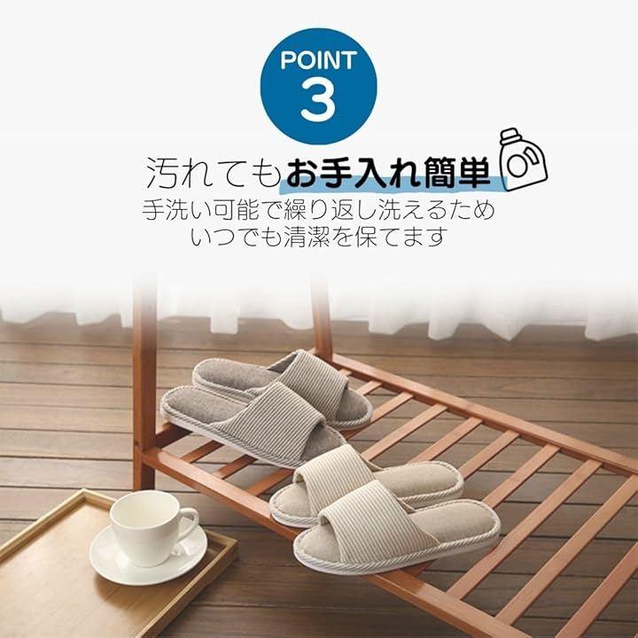 「お家時間を楽しく彩る」シンプルながらもスタイリッシュなボーダー柄のスリッパは、家庭内での使用はもちろん、来客時にも最適です。